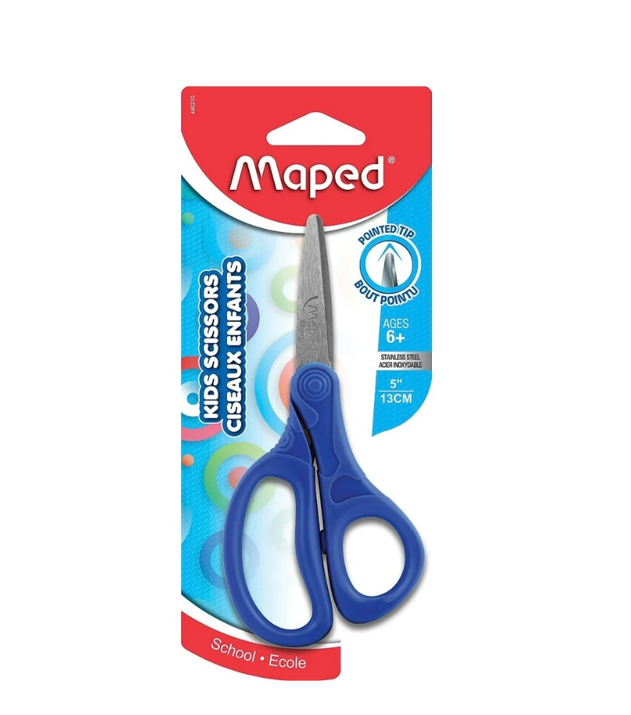 Ciseaux scolaires 5" bouts pointus. Voir le choix de couleur.