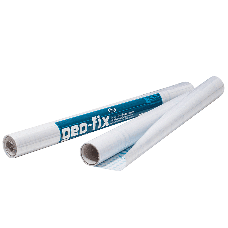 Rouleau de pellicule adhésive transparente Geo d'une largeur de 18 pouces et longueur de 5 pieds. Aussi appelé MacTac ou couvre-livre.